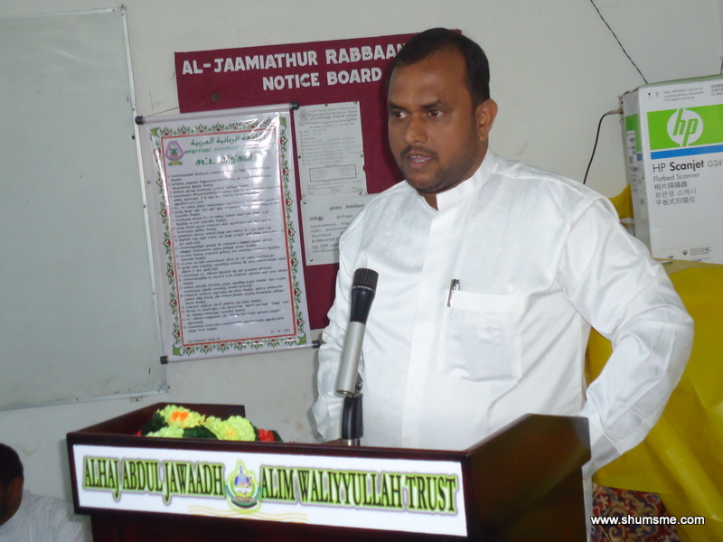 இவ்வைபவத்தில் அதிசங்கைக்கும் மரியதைக்குமுரிய ஆன்மீகத் தந்தை கலாநிதி அல்ஹாஜ் A. அப்துர் றவூப் மிஸ்பாஹீ,பஹ்ஜீ (தால உம்றுஹூ) அன்னவர்களும் மற்றும் சிறுவர் மகளிர் விவகார பிரதியமைச்சர் அல்ஹாஜ் MLAM. ஹிஸ்புல்லாஹ் M.A, காத்தான்குடி நகரபை பிரதி முதல்வர் அல்ஹாஜ் MIM. ஜெஸீம் JP, கிழக்கு மாகாண சபை உறுப்பினர் KLM. பரீட் JP, றப்பானிய்யஹ் அறபுக் கலாபீட அதிபர் மெளலவீ HMM. இப்றாஹீம் நத்வீ, சிரேஷ்ட விரிவுரையாளர் மௌலவீ MM. அப்துல் மஜீத் றப்பானீ, அல்ஹாஜ் அப்துல் ஜவாத் ஆலிம் நம்பிக்கைப் பொறுப்பின் செயலாளர் மௌலவீ KRM. ஸஹ்லான் றப்பானீ BBA மற்றும் உலமாக்கள், பிரமுகர்கள், பொதுமக்கள், ஜாமிஅஹ் மாணவர்கள் கலந்து சிறப்பித்தனர்.