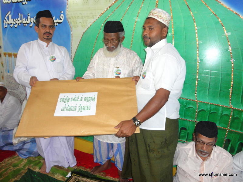 அதனைத்தொடர்ந்து காதிரிய்யஹ் திருச்சபை சார்பாக அதன் செயலாளர் HM. அமீர் ஆங்கில ஆசிரியர் அவர்களினால் மிஸ்பாஹீ நாயகம் அவர்களுக்கு நினைவுச்சின்னம் வழங்கிவைக்கப்பட்டது.