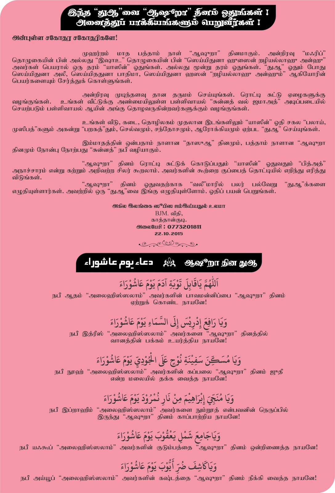 இந்த “துஆ”வை “ஆஷூறா” தினம் ஓதுங்கள் ! அனைத்துப் பாக்கியங்களும் பெறுவீர்கள் !