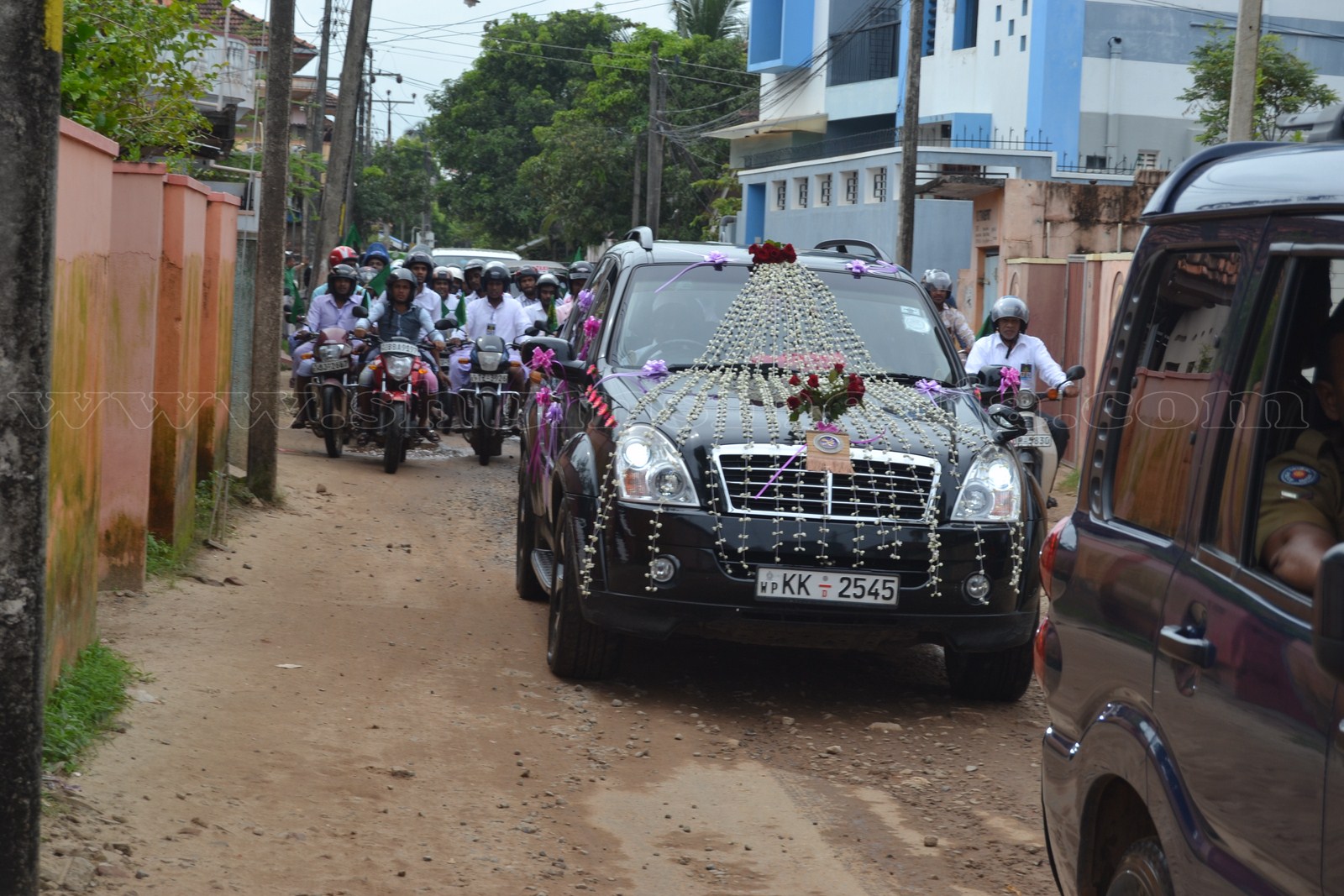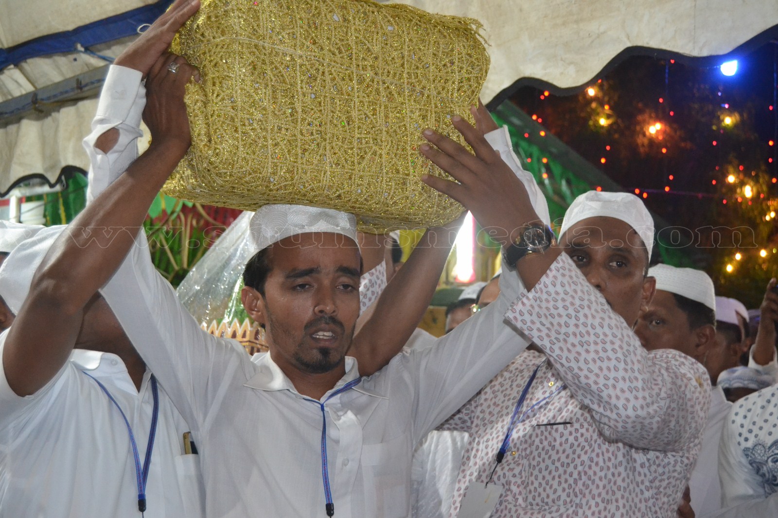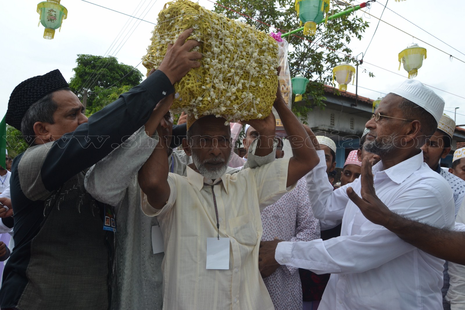 ஷெய்குனா மிஸ்பாஹீ நாயகம் அன்னவர்களின் தலைமையில் காத்தான்குடி – 05 பத்ரிய்யஹ் ஜும்அஹ் பள்ளிவாயலில் இருந்து பிரத்தியேகமாக அலங்கரிக்கப்பட்ட வாகனத்தில் பிரதான வீதியைத் கடந்து தீன் நகர் ஊடாக ஹைறாத் பள்ளிவாயலுக்கு திரு முடிகளைக் கொண்டு வரப்பட்டது.